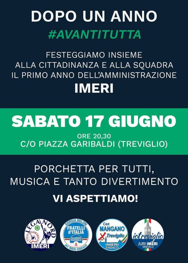 È già trascorso un anno, eppure sembra ieri. E del resto, come si possono cancellare le bellissime emozioni di una campagna elettorale ricca di relazioni, confronti, amicizie e tante soddisfazioni? L’entusiasmo di allora è lo stesso di oggi, grazie a una squadra compatta che lavora con entusiasmo, passione e buonsenso per amministrare nel migliore dei modi Treviglio.