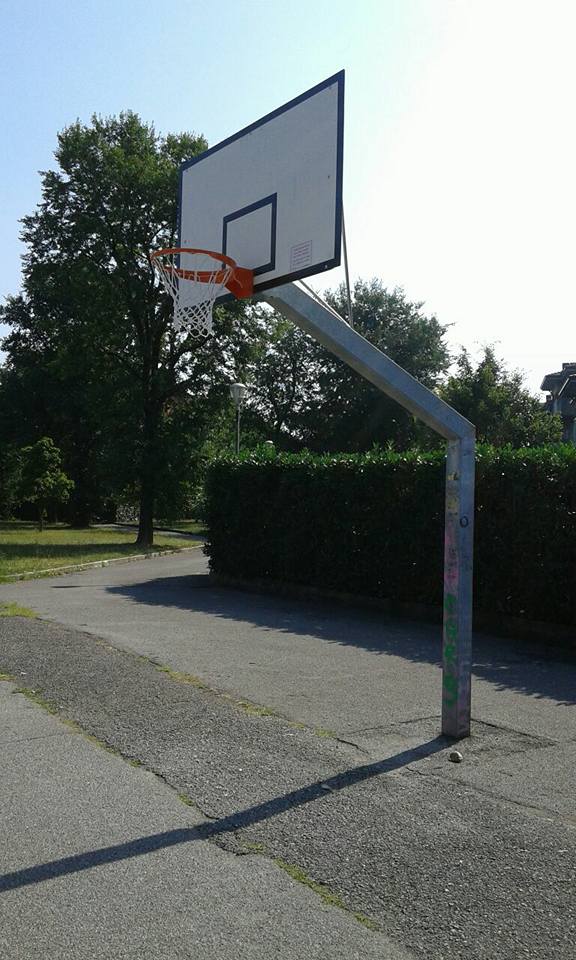 Stamattina sono stati posizionati i canestri nel campo da basket in via Sante Capitanio e Gerosa; domani sarà rifatta la segnaletica. #nonesistonosportminori #concretezza