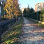 Si procederà con il recupero del tratto di antica costruzione della spallatura in mattoni e con la realizzazione di un nuovo percorso pedonale con recupero della recinzione esistente sul lato est della scuola “Rodari.