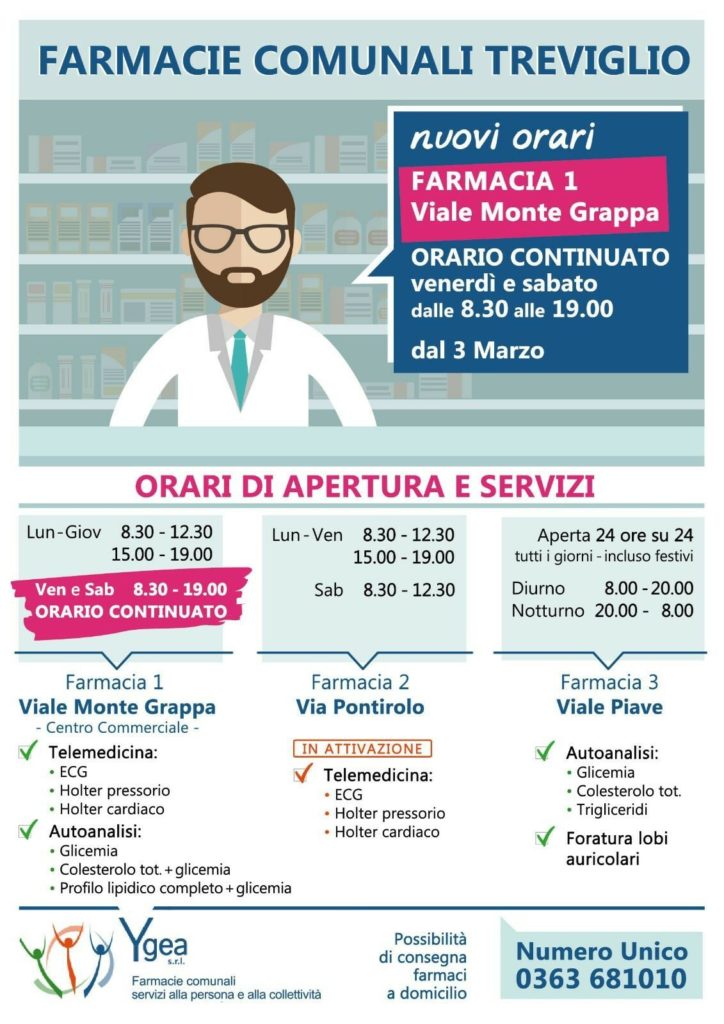 Da domani orario continuato il venerdì e sabato alla Farmacia Comunale di viale Montegrappa!